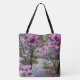 Your choice of stylish tote bag or crossbody bag with an all-over print that features the photo image of a botanical garden with a pathway lined with beautiful, pink rhododendron flowers, along with an inspiring/motivational quote that reads, "Follow Your Dreams." A lovely, floral design! Select your bag style and size.