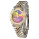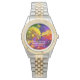The watch is very nice, the picture is great and the watch looks like quality. The only problem I am having with it is that it is a little too large, and I also can't figure out how to open the clasp. No directions came with it. Very good. The printing is perfect and the watch keeps good time.