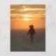 little girl walking into sunset on beach