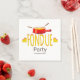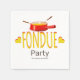 Paper napkins designed for a fondue party celebrated at any time . You can change the word " Party" and the date /name of the party to suit your occasion .Typography design with narrow hand-drawn fonts , hearts and a graphic fondue pot .
