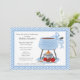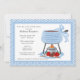 Elegant fondue bridal shower invitations. Featuring a blue fondue pot filled with bubbling chocolate and tied with a big blue bow. The fondue pot has the saying "Something old, something new, something borrowed, something blue" inscribed on the font. Strawberries and chocolates are ready to dip with the fondue forks on the plate. Removable lattice work background. Coordinated postage stamps, stickers and name tag labels available. PinkInkArt original!