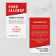 The back of the card includes a brief, respectful note to the kitchen staff about the seriousness of your allergies, along with space to list an emergency contact. Simple and professional, this card offers peace of mind with a polished presentation—perfect for keeping things safe while maintaining a refined look. Fully customisable to suit your needs.