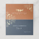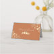 Modern, elegant, terracotta and navy blue wedding place card, with name and table number, gilded floral lace and modern calligraphy script.