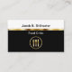 Food critic business cards with powerful but simple black and white two side design that includes a simulated gold metal divider line printed on the front, a food plate symbol, and text layout you can customise and personalise. Best business cards for a food review professional, critic, or food taster.