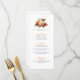 Simple menu with Appetizers, Entrees and Dessert listings. This simple but festive pumpkin and wine themed centerpiece design is perfect for any fall celebration or gathering.
