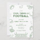 Food, friends and football 🏈 Send hand drawn football invites for the big game with a customizable green doodle football watch party invite. Easily edit your hand-drawn football party invite with all of the championship game day details.