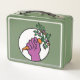 This is a standard metal lunchbox that appears to work just fine. We designed this box ourselves with an uploaded photo and custom text on the front and back. It looks absolutely beautiful except the front of the lunchbox is not centered like it shows in the photo. The print borders don't align with the inset flat part of the box where the preview photo online showed it perfectly centered in there. The back looks nice and centered though.