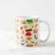 A vector art of different varieties of food such as cotton candy, hamburger, fried prawns, gyoza, pizza, potato fries, hotdog, donut, corndogs, jelly, ramen, lasagna, sundae, ice cream, muffin, nachos, mochi, sushi, sandwich, rice ball, and taco.