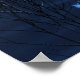 A snow-covered path meandering through the birch forest on a dark winter night. The way is lined with lampposts giving off a silvery blue glow, but in the shadows are bright, mesmerising shapes like little fairy lights, luring the traveller off the trail. In the distance the lavender glow of some mysterious forest gathering lights up the cold sky.