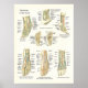 Anatomy of the foot poster. Eight images created with vintage image showing superficial and deep anatomy of the foot and ankle. The images show: muscles and tendon-sheaths on the dorsum of the left foot; Arteries and bones of the dorsum of the left foot and ankle; tendon-sheaths and muscles of the internal malleolus region; and superficial & deep layers of the soles of the right foot.
