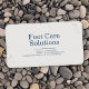 A simple professional business card for foot care solutions featuring two outline footprint illustrations at two opposite corners. The design conveys trust and medical professionalism with a calming color palette of blue and white. Perfect for podiatrist, pedicure, reflexology, massage, etc.