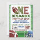 Ready for a football birthday party? This design features hand-painted watercolor items such as a football helmet, and football ball, together with the typography "First Year Down", and "Little Rockie". All text is editable on this birthday invite and budget-friendly postcards are available too! The design is suitable for boys and is fully customisable for a 1st birthday, 2nd birthday, and older kids. Find matching items in my shop.