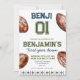 Ready for a football birthday party? This design features hand-painted watercolor items such as a football helmet, and football ball, together with the typography "First Year Down", and "Little Rockie". All text is editable on this birthday invite and budget-friendly postcards are available too! The design is suitable for boys and is fully customisable for a 1st birthday, 2nd birthday, and older kids. Find matching items in my shop.