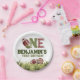 Ready for a football birthday party? This design features hand-painted watercolor items such as a football helmet, and football ball, together with the typography "First Year Down", and "Little Rockie". Find matching items in my shop.