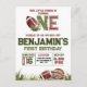Ready for a football birthday party? This design features hand-painted watercolor items such as a football helmet and football ball together with the typography "First Year Down", and "Little Rockie". All text is editable on this birthday budget-friendly postcard and invites are available too! The design is suitable for boys and is fully customisable for a 1st birthday, 2nd birthday, and older kids. Find matching items in my shop.