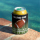 Football game day personalised can coolers for beer and soda cans and bottles featuring a football and field yard lines. Perfect to give to your party host or give as party favours for the big game. Change the placement of the football, the wording, the font, the font colour using the easy Customise further link. MATCHING invitations, plates, napkins, coasters, favour bags and more in our store.