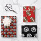 A cool set of matching Christmas wrapping paper sheets for football players and fans! The first sheet features a seamless red and black chequered pattern with a football on the red squares and a snowflake on the black squares. The second sheet features a pattern of footballs on a red background, and the third sheet features a pattern of snowflakes on a black background. These add a fun special touch to Christmas gifts for football lovers during the holiday season offer a different colour scheme beside the traditional red and green Christmas colours.