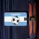 The national flag of Argentina, three horizontal bands coloured light blue, and white. The full flag featuring the sun is called the Official Ceremonial Flag. In this case the sun has been replaced with a sketch / scribble style picture of a black and white, soccer ball / football. The text, in white reads Argentina.