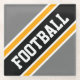 This sporty design features athletic FOOTBALL text inside a highlighted wide diagonal black, white, and golden yellow racing stripes against grey background. The colours and text in this design can be personalised.