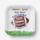 This football-themed baby shower paper plate is the perfect way to celebrate the arrival of a baby boy! These plates feature a playful design with football graphics and the message "Touchdown! Your team is having a boy!" Sure to be a hit with any football-loving parents-to-be, this paper plate is a fun and unique way to add personalisation to your football themed baby shower.