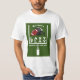 Green and white American football themed bachelor party shirt with field goal, helmet and ball. Personalise it with the groom's name.