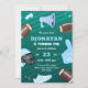 Football Ball First Birthday Invitation is a part of the Football Ball First Birthday Party collection. This product features green & blue colours, balls, hats, accessories. Done mostly in green & blue colours with decorative fonts. Explore more matching products in our store.