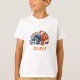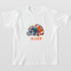 Football Ball Helmet Cartoon Name T-shirt. Fun and modern football birthday t-shirt with a custom name. Featuring a bold cartoon illustration of a football and helmet in orange and grey colours. Add your name.