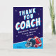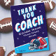 Football Ball Helmet Cartoon Coach Thank You Card. Show your appreciation with this fun and heartfelt football thank you card designed just for coaches! Featuring a bold cartoon illustration of a football and helmet in red, navy, and white, this card is perfect for youth teams or individual players. Great for end-of-season gifts, or just to say thanks to an inspiring coach. Add your message inside or erase it.