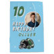 Football Ball Helmet Cartoon Photo Birthday Medium Gift Bag. Fun and modern football birthday gift bag. Featuring a bold cartoon illustration of a football and helmet in green and blue. Add your photo, name and age.