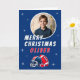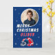 Football Ball Helmet Cartoon Photo Merry Christmas Card. Fun and modern football Christmas card. Featuring a bold cartoon illustration of a football and helmet in blue and red colours. Add your photo, name, and message inside the card.