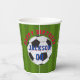 These personalised birthday party paper cups have a football design with a name, age, and event all on a football field with a football. Personalised these cups with a the birthday event, name and age year. Super fun paper cups to use at your kids football themed birthday party. You can change the colours in customise for any fonts.