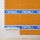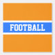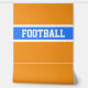 This modern sporty design features athletic white FOOTBALL text inside a bright blue centre stripe highlighted with white horizontal racing stripes against bright orange background. The colours and text in this design can be personalised.