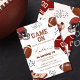 Get ready to score big with this “Game On” American Football Birthday Invitation! Perfect for your little all-star, this fun and energetic design sets the tone for a day filled with touchdowns, team spirit, and celebration. Featuring bold football graphics and sporty lettering, it’s ideal for boys and girls who love the game. Whether you’re hosting a backyard football party or a sports-themed bash, this invitation brings the excitement of the field straight to your guests. Personalize the details easily and get ready to kick off the ultimate game-day party!