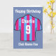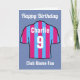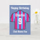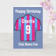 Personalise this football club shirt birthday card with a name, number, and football club name. Claret and Blue. Happy Birthday football fan. Card for a football mad supporter.