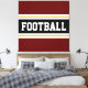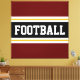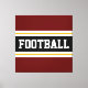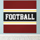 This colourful sporty design features bold FOOTBALL text inside a wide black horizontal centre stripe with white and golden yellow racing stripes against deep red outer stripes. The text can be personalised.