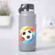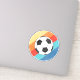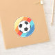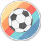 Abstract grunge retro style illustration of a football on striped yellow, orange, red, turquoise and dark blue retro sunset background for everybody who likes soccer. It is easy to change the background colour and personalise it.