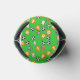 Design is an illustration with orange football shirts, football fan cartoon faces, and footballs. Overall pattern is on a green background. This football design shows the colours of the team you follow. Shirts are in orange gold.