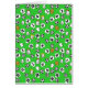Football illustration of fans and footballs drawn in a loose cartoon style. Note card that shows a colourful design reflecting the football club you support. Shirts are in white