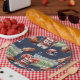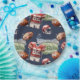 Elevate your American football game with our sports equipment pattern design! Featuring football helmets, jerseys, and a stadium on a dark blue background, this watercolor pattern in red and white will make you stand out on the football field.