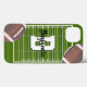This personalised phone case has a football fans design with a football field and two illustrated footballs. Personalised this phone case with a first or last name and a initial. A great personalised sports gift to give the football fan in your life that play card games.