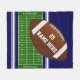 Football Field PERSONALIZED Football Fleece Blanket with YOUR TEXT and COLORS. Change blue and white background and text to Your Football Decor COLORS (Instructions below). 3 football blanket SIZES : LARGE, MEDIUM and SMALL. call Designer Linda to make the design and colour changes for you at no extra charge.