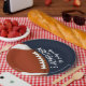 Customisable paper plates in 2 SIZES - 9" and 7" feature a football on navy blue and the words "It's Game Day!" along with your name. MORE colours and matching items in our store.