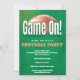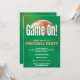Get ready for the ultimate football game party with our Football Game Party Invitation. Whether you're hosting a gathering at home or heading to a sports bar, our invitation sets the tone for an exciting event. With its bold, green design featuring a football and eye-catching typography, this modern invite captures the thrill and energy of the game. Invite your family and friends to join in the fun and kick off an unforgettable football experience.