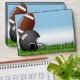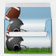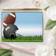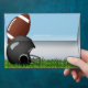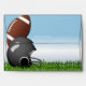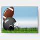 Celebrate a football victory, birthday party or watch the big game with this cool football merchandise. Green grass along the bottom, with a black and grey football helmet, and pigskin football ball, soaring through the blue sky. Watch the championship game or enjoy your own team and coach sports success. All Designs Copyright © 2012 www.Custominvitesonline.com