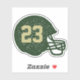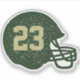 Football fans and players will appreciate this simple football helmet silhouette with a distressed texture and custom text area where you can put a number, year or team or personal initial. Make it you - make it yours! The green and gold are common school colours but other options are available. This personalised football helmet sticker makes a great as a gift for high school athletes! Also makes a great teen stocking stuffer.