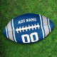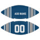 Fun football jersey blue, silver and white striped design with your own name and number.