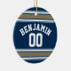 Football Jersey Navy Blue Gold Stripes Name Number Ceramic Tree Decoration