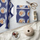 Cool customisable sports wrapping paper in sporty blue featuring a football player kid wearing a red and silver quarterback uniform. Personalise with your child's name in white. A great football themed birthday party gift wrap.