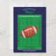 Personalise these football birthday invitations with your player's favourite photo. The football card design has a dark blue background and features a helmet graphic for the birthday honorees age. All the text can be changed to suite your needs.