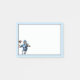 Post-it-Notes shown in white with blue borders, with a sports football player print.